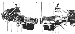 The photo on the left was taken at an open house held at Camp Mabry, where our Hetzer is housed. The center photo is taken from a page of the German driver's handbook. It shows the rear wall of the fighting compartment (not the entire wall is shown). The photo on the right is taken from the Swiss manual on the 7.5 cm Pak 40, the gun mounted in the Swiss G-13. It shows the major components of the gun and is similar to the mount used in the German Hetzers.