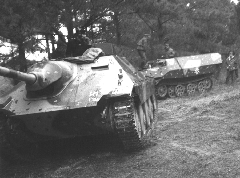 Two more photos of Hetzers in England. The first is from the same group of photos shown above, while the color photo is of the Hetzer on display at the Bovington Tank Museum in England. I am unsure if they are in fact the same vehicle, since the color photo clearly has a different paint scheme (which appears incorrect for war time Hetzers), evidently a recent paint job.