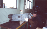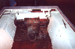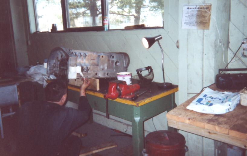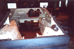 The next series of photos begin with detail shots of portions of the right and left idler wheels. Several shots of the Praga AC engine then follow. Note that the head of the engine has been removed (you can see one of the pistons sticking up) and rags are placed on top of the exposed area to keep dirt and contamination out. Fred has stated that he will continue to supply photos to me during the restoration process, so that viewers may keep abreast of the developments. To see more of Fred's site, go to: Worthington Park, CFB Camp Borden