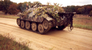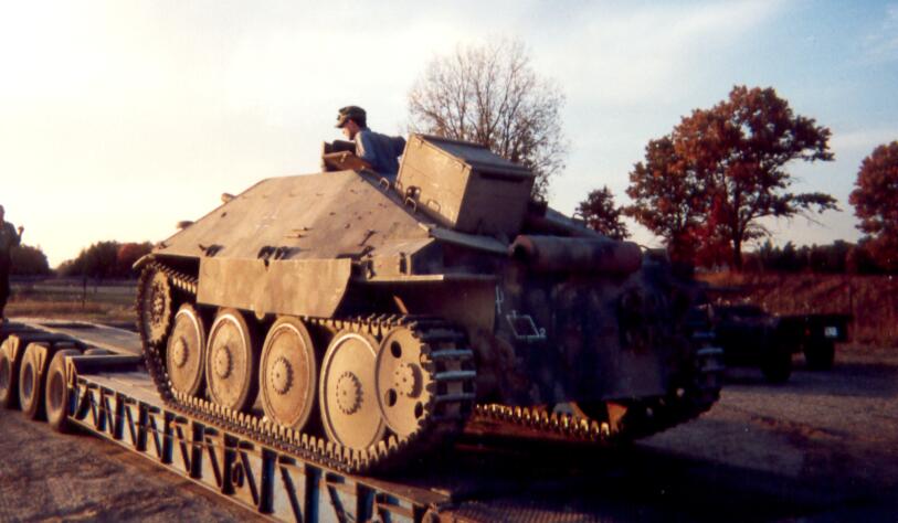 Guy has also sent me these three photos of the Hetzer used by his reenactment unit. The first shows the Hetzer used by 2nd Panzer being loaded onto the transport trailer. The second is of the Hetzer moving down the road, ready for battle. The last shows the Hetzer near a SPW having a Pak 40 anti-tank gun being hooked onto the trailer hitch.