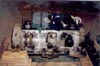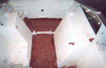 The first photo shows the vehicle from the right front quarter. Notice the entire main gun assembly and the roof have been removed. The next photo shows the interior of the hull from the rear, showing the placement of the transmission and final drives. The next photo shows a close-up of the engine compartment (without the engine.) The large tanks on either side of the hull wall are the fuel tanks. The next several photos show views of the Pak 39 main gun with gimbel mount, recoil mechanism, and saukopf mantlet. This is followed by a close-up view of the transmission and final drive assemblies in the front of the hull. The last two photos show two views of the engine block being painted.